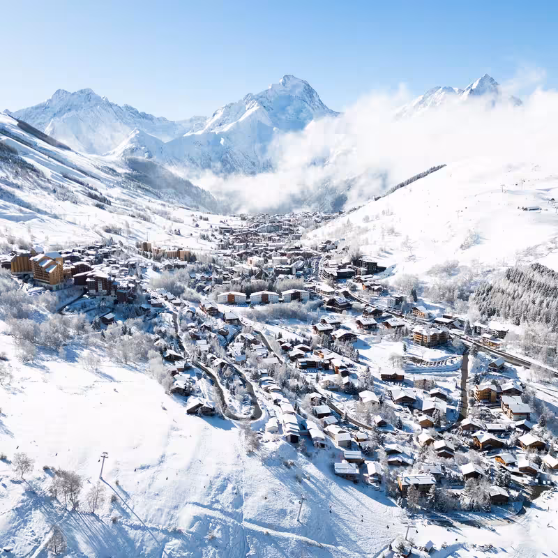 Les Deux Alpes is a world-renowned ski resort in the heart of the French Alps, famous for its glacier, which peaks at an impressive 3,600 meters, allowing skiing year-round. With over 220 km of ski runs, the resort offers something for everyone, from gentle slopes for beginners to more challenging terrain for advanced skiers. Freestyle enthusiasts will love the resort’s renowned snowpark, one of the largest in Europe.